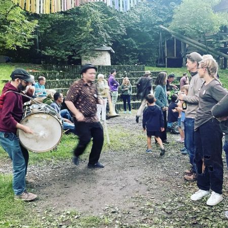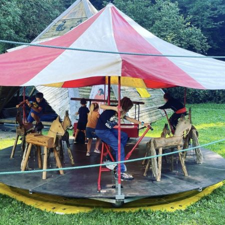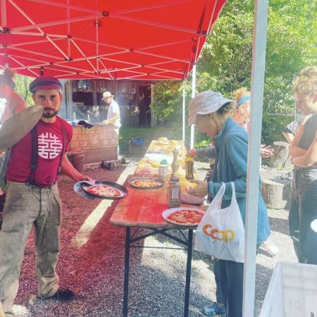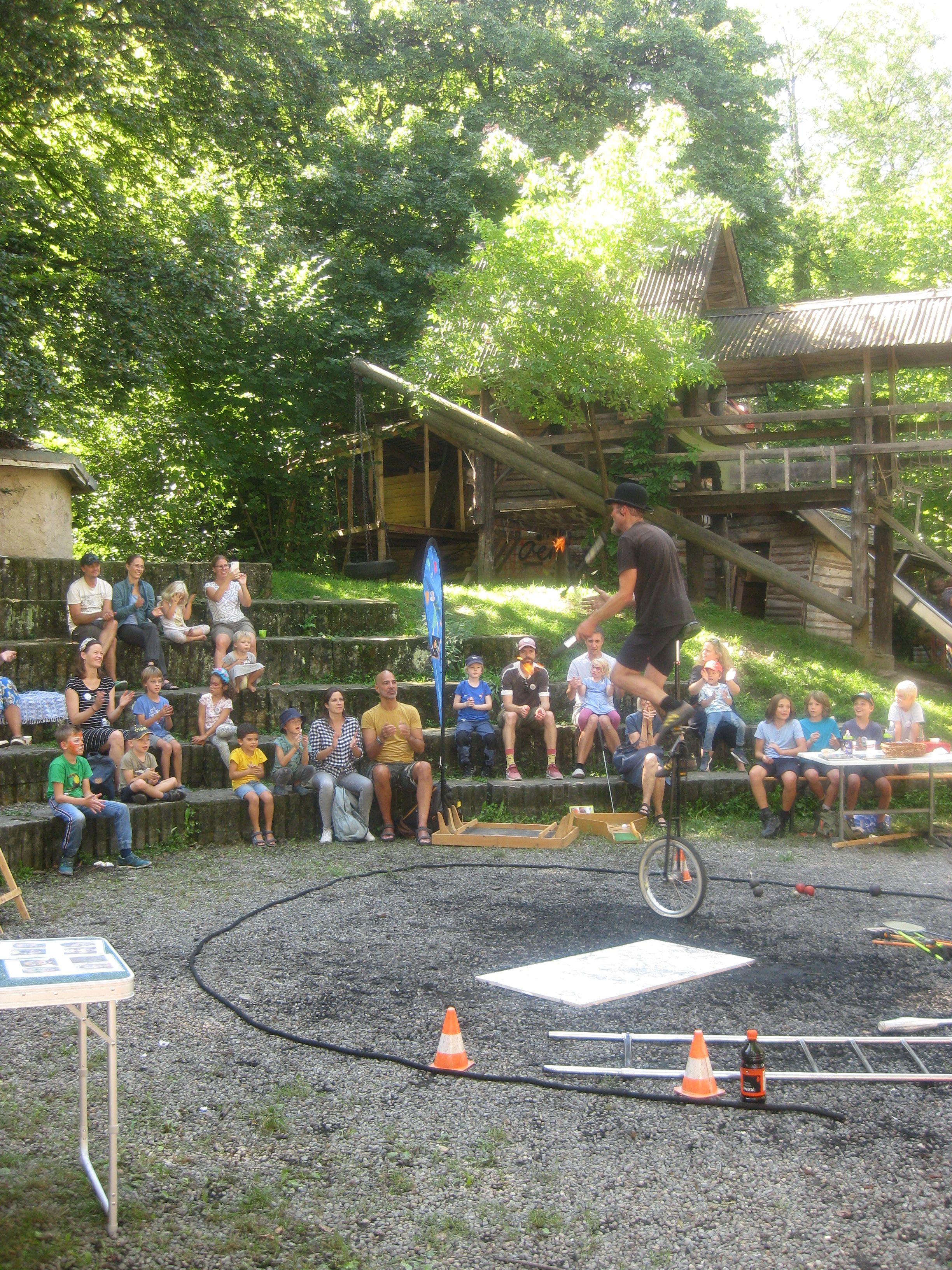 Das Holzwurm-Fest für Mitglieder mit Pizza, Karrusell, dem Musikspektakel von Les Legroup und Sam National und der Aufführung von Artist Köbi zog Gross und Klein auf den Spielplatz und war ein voller Erfolg.