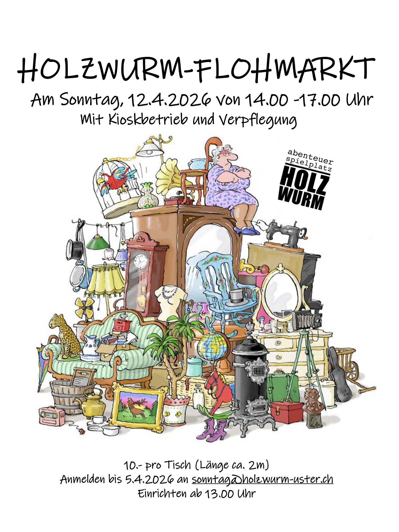 Reserviere bis 5. April deinen Tisch (für 10.-) unter sonntag@holzwurm-uster.ch